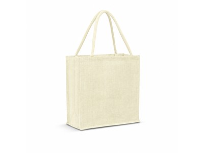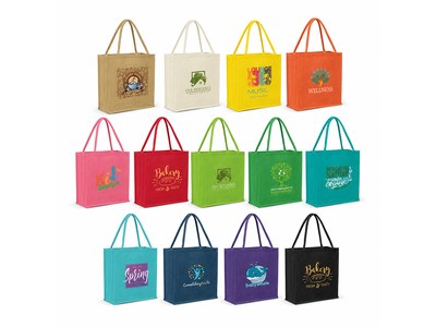 Custom jute bags are a laminated jute tote bag with a gusset and padded cotton handles. The Custom Printed Jute Bags and handles have been dyed to match. These are a fantastic branded bag keeping your brand environmentally friendly.