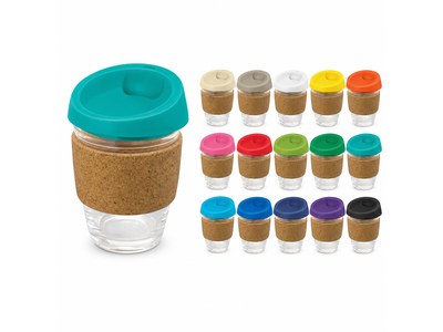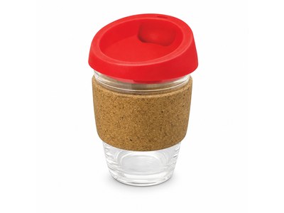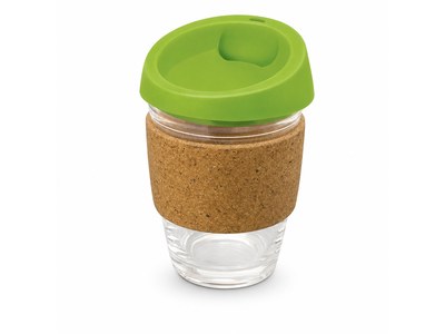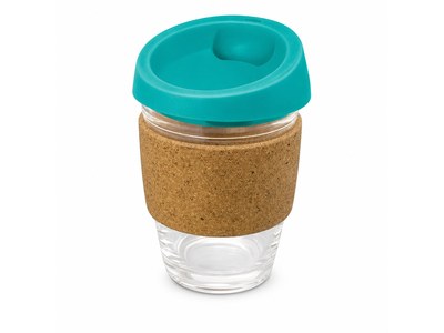 Incorporate branded glass coffee cups with cork band (340ml) in your next promotional campaign
