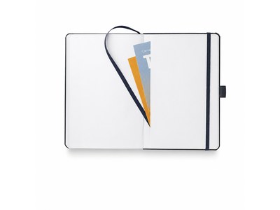 Capture your thoughts in eco-friendly style with the Recycled JournalBook®. Crafted with sustainability in mind, this custom notebook features a uniquely crafted hardcover, colour-matching elastic closure, pen loop, and ribbon page marker for added convenience.