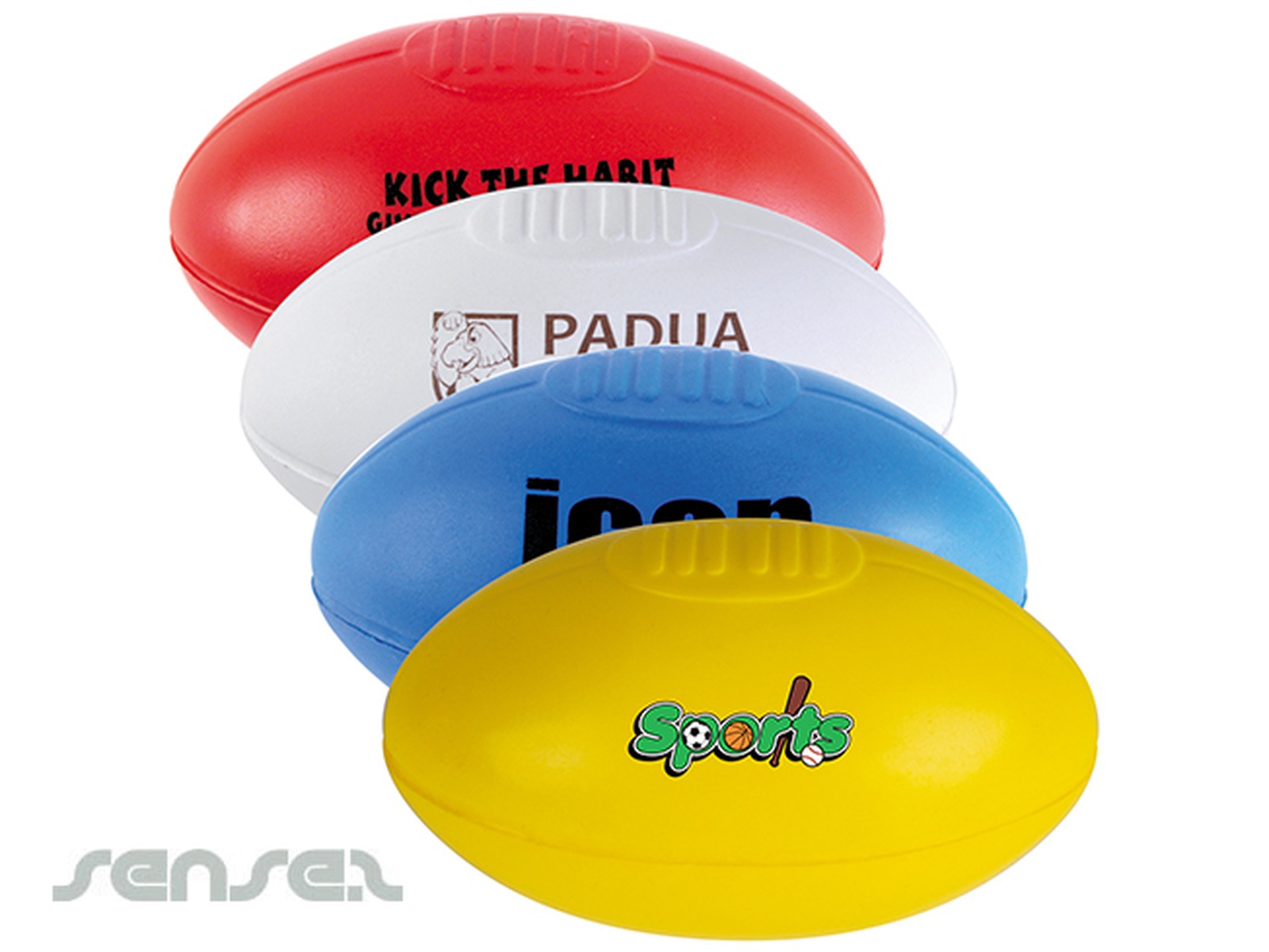 Custom brand these promotional stress footballs or one of our best-selling promotional sports gear»sport themed items with your company logo!